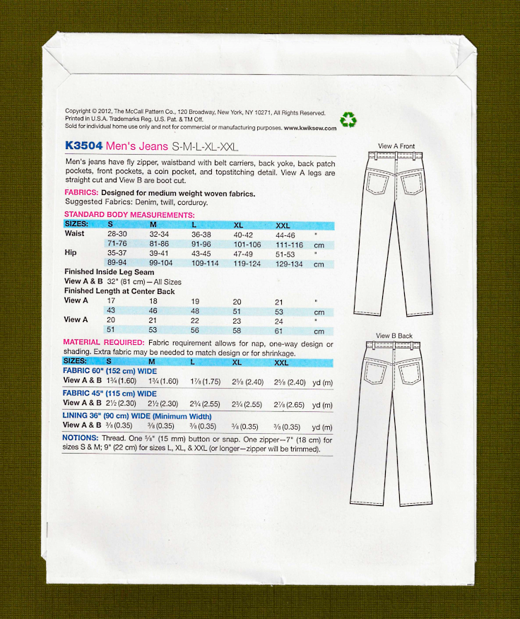 Kwik Sew K3504 S 2x 28 46 Sewing Pattern Men S Jeans Regular Cut Or Flared For Sale Online Ebay